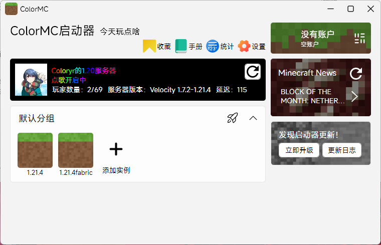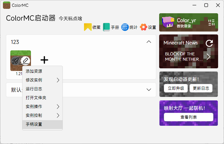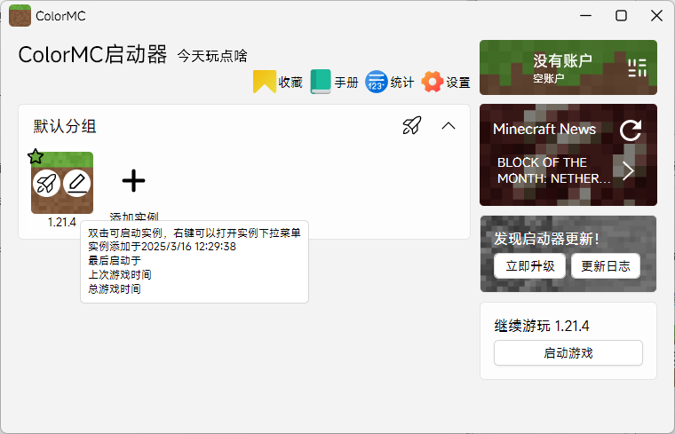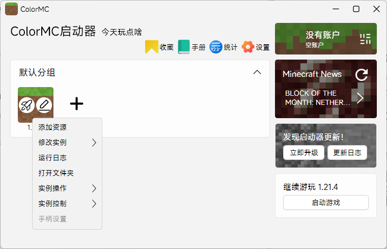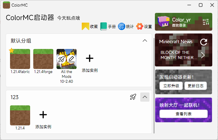 ColorMC是多实例游戏启动器,启动器是以游戏实例为单位启动游戏游戏实例相当于一个独立的游戏配置