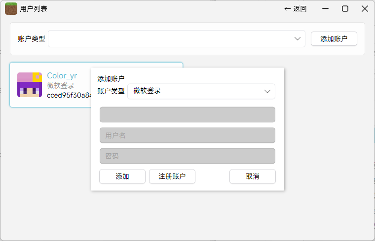- 导出所有账户 导出所有登录的账户,只能导入到ColorMC启动器
