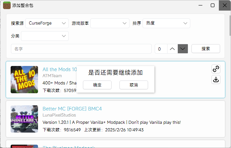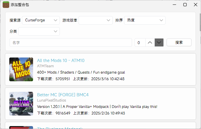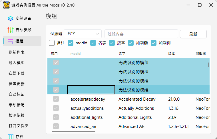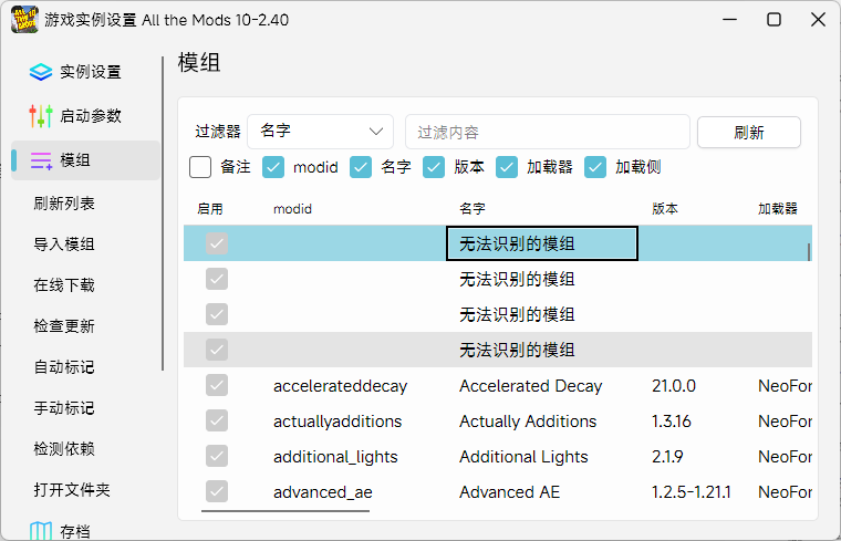 若为整合包,且有标记的模组,则模组可以不需要上传,可以在启动前自动补全