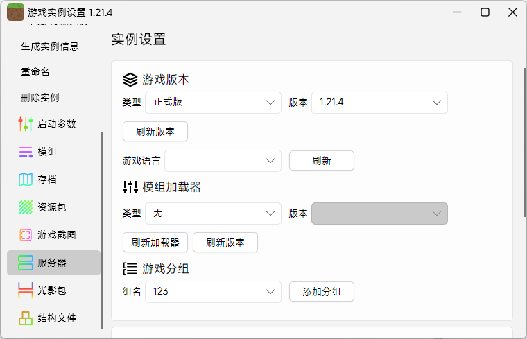 使用多实例管理游戏可以将多个整合包放在一个启动器内统一管理,互不影响,但共享游戏资源文件和运行库,以此来减少重复文件