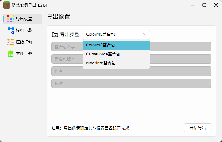 附带启动器导出则是一个.zip压缩包,若不是则是一个.colormc压缩包,可以拖进启动器主界面内导入
