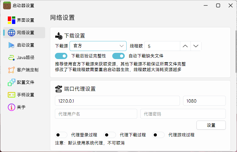 启动云同步之前,需要在启动器设置的网络设置内配置正确的云同步密钥