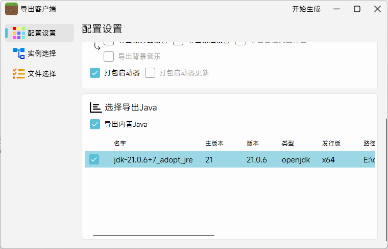或者需要导出的Java,只支持内置的Java,也就是从ColorMC下载的Java